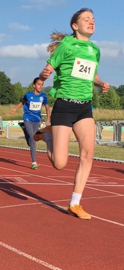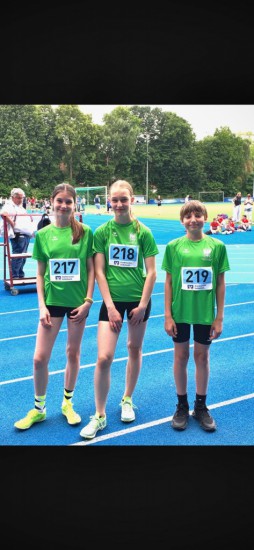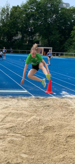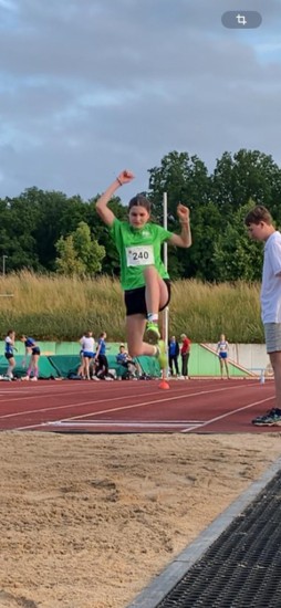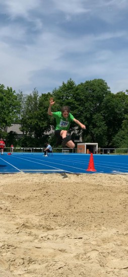 Sophie war es der erste 100m Lauf in einem Wettkampf, den sie mit 14,93 sek meisterte. Bei dem Weitsprung konnte sie drei gültige Sprünge absolvieren, wo ihr eine Weite von 3,66m gelungen ist. Bei einer starken Konkurrenz belegte sie Platz 10 und 13. Loki konnte im Weitsprung eine neue persönliche Bestleistung von 3,70m springen und belegte damit Platz 3. Auch er musste das erste Mal im Sprint für die 75m Strecke antreten und lief eine Zeit von 12,04sek. Damit hatte er den 4. Platz sicher. Loni Trimpe bestätigte im Weitsprung, auf den Zentimeter genau, Ihre persönliche Bestweite von 3,82m und landete damit im guten Mittelfeld auf Platz 9. Der 75m Sprint in 11,90sek führte zu einer Platzierung auf Platz 14. Bei extremen, schwül warmen Temperaturen können alle Athleten auf passable Leistungen zurückblicken und stolz auf sich sein. Es sind weitere Wettkämpfe im Sommer geplant.